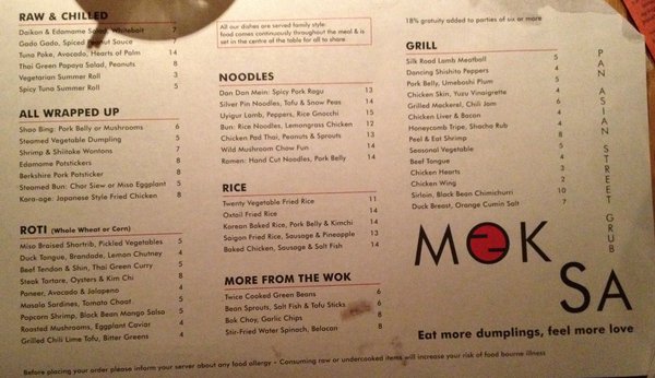Moksa: fun, creative new place in Central Square, serving Asian-style tapas. Really fun menu, lots of good options, and good, interesting cocktails. It’s a new place so both food and service execution leave something to be desired, but I think it will be ironed out in a matter of weeks. Really nice outdoor dining option in Central Square, too.