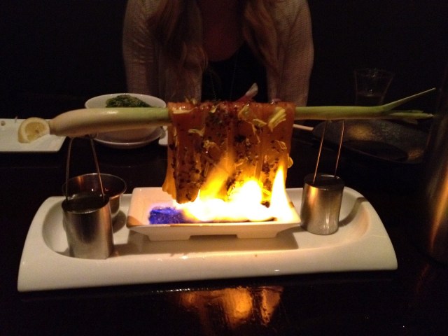 The “salmon on fire” is worth getting, if only for the presentation. The maki were good, and I didn’t go omakase this time (since I was sharing the food with a friend who said she wasn’t that hungry…).
