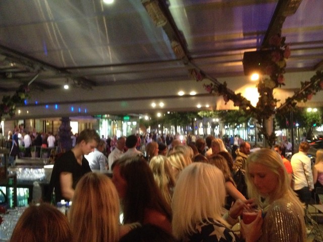 | An outdoor bar in the Stureplan area of Stockholm, lots of friendly people. |