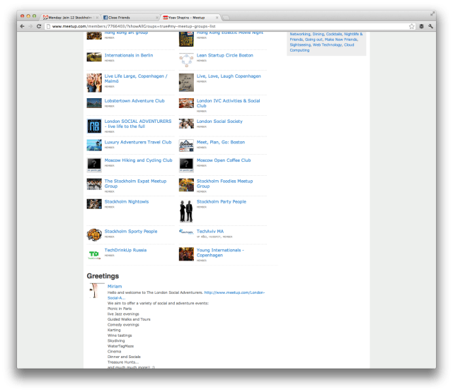 This is a good place to send a shout-out to the Stockholm Sporty People, Around Berlin in 80 Restaurants, Live Love Laugh Copenhagen, Hong Kong Eclectic Movie Night, Bangkok Beach Volleyball, probably my top 5 meetup groups of the trip whose events I actually attended.