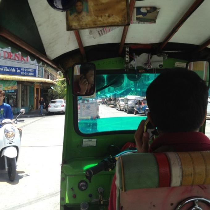 | Riding on the back of a tuk-tuk in Bangkok’s Chinatown. |