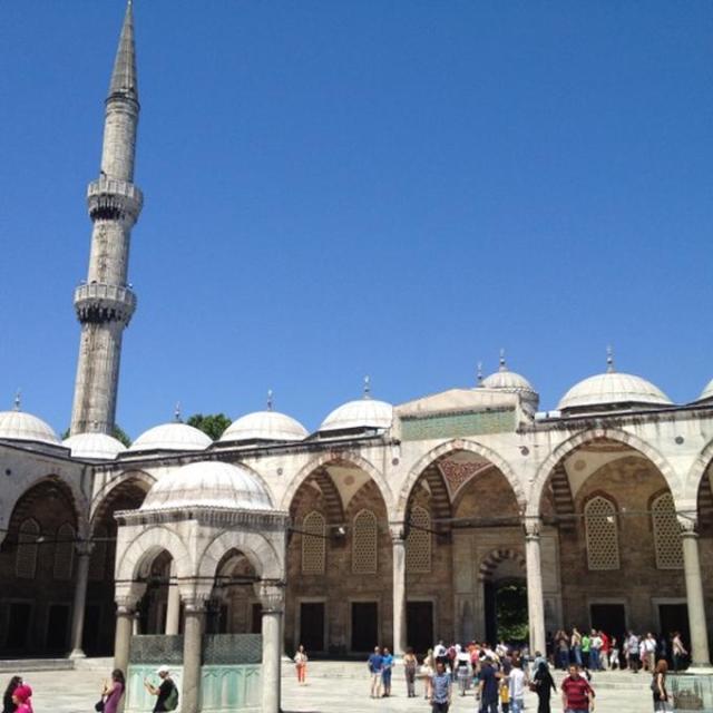 | Walking around the Blue Mosque courtyard while waiting for service to end. |