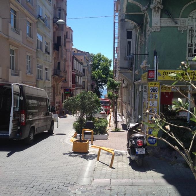 My apartment, obtained via Airbnb, was a few blocks away from Taksim Square, right in the middle of town, in a great little neighborhood called Cihangir. I met my fantastic hostess, Isil, who showed me around the apartment, pointed out nearby places to eat and shop, and made me feel at home. Thanks, Isil! My “home street” in Istanbul had a view of the Bosphorus at the end, down a fun slope that I ended up walking (and running) several times.