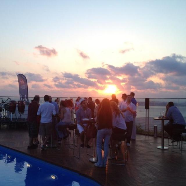 That party turned out awesome. Adam Clay, a vocalist who sometimes does work for David Guetta and others, was there to accompany the DJ, and the sunset view of Istanbul was perfect. The pool was full and well-used, well-set-up for the party.