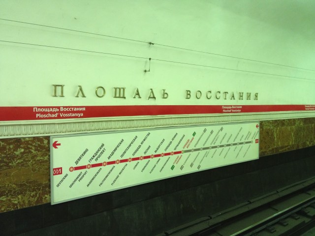 St. Petersburg’s underground train / metro system is well-known for its very deep and pretty stations. I made sure to use the subway a couple of times, and it was fun. It was easier to find your way around compared to Moscow’s subway, because the signs had some English on them.