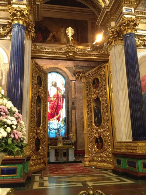 Of the several excellent churches in St. Petersburg, my favorite was the Church of the Savior on Blood, which has several variations of that name. It’s a colorful church that you can tour, just a few steps off Nevskiy Prospekt. As I found out, it’s also near several bars and restaurants, a convenient location all around.