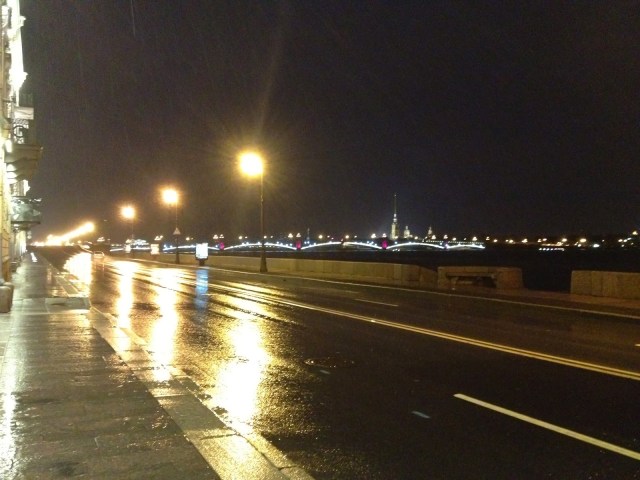 | First view of the Neva river. Nice wide sidewalks for jogging. |