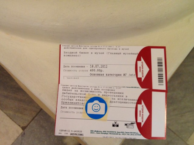 | My Hermitage museum ticket, with extra sticker for photography permit. |