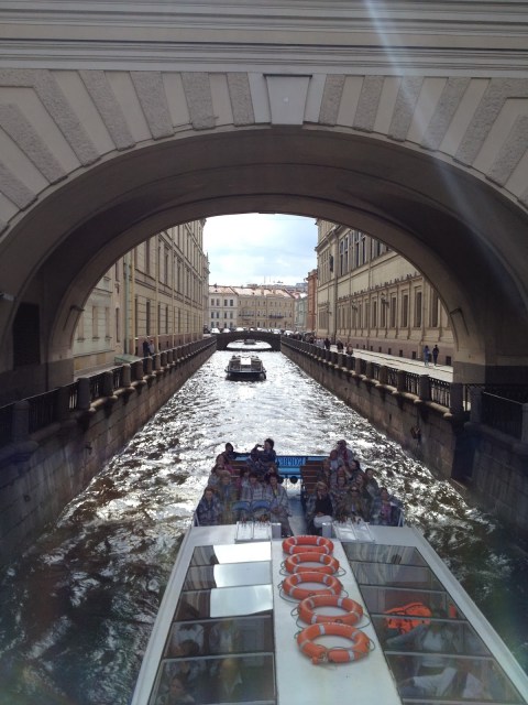 It was immediately evident why some call St. Petersburg “the Venice of the North.” There are canals everywhere, with bridges over them, and boats traveling around.