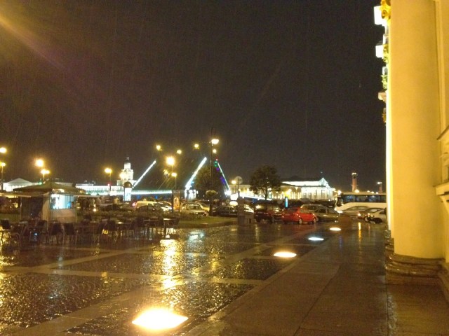 There are many bridges over the Neva river. They are closed (meaning cars can travel over them) most of the time. They have a set schedule of when they open to allow boats under them. They are also nicely lit up at night, so watching them open and close is a sort of tourist (and local) attraction. This typically happens in the middle of the night, so it’s a nice break between dinner / drinking / dancing / whatever you’re doing at that time. Here’s a schedule.