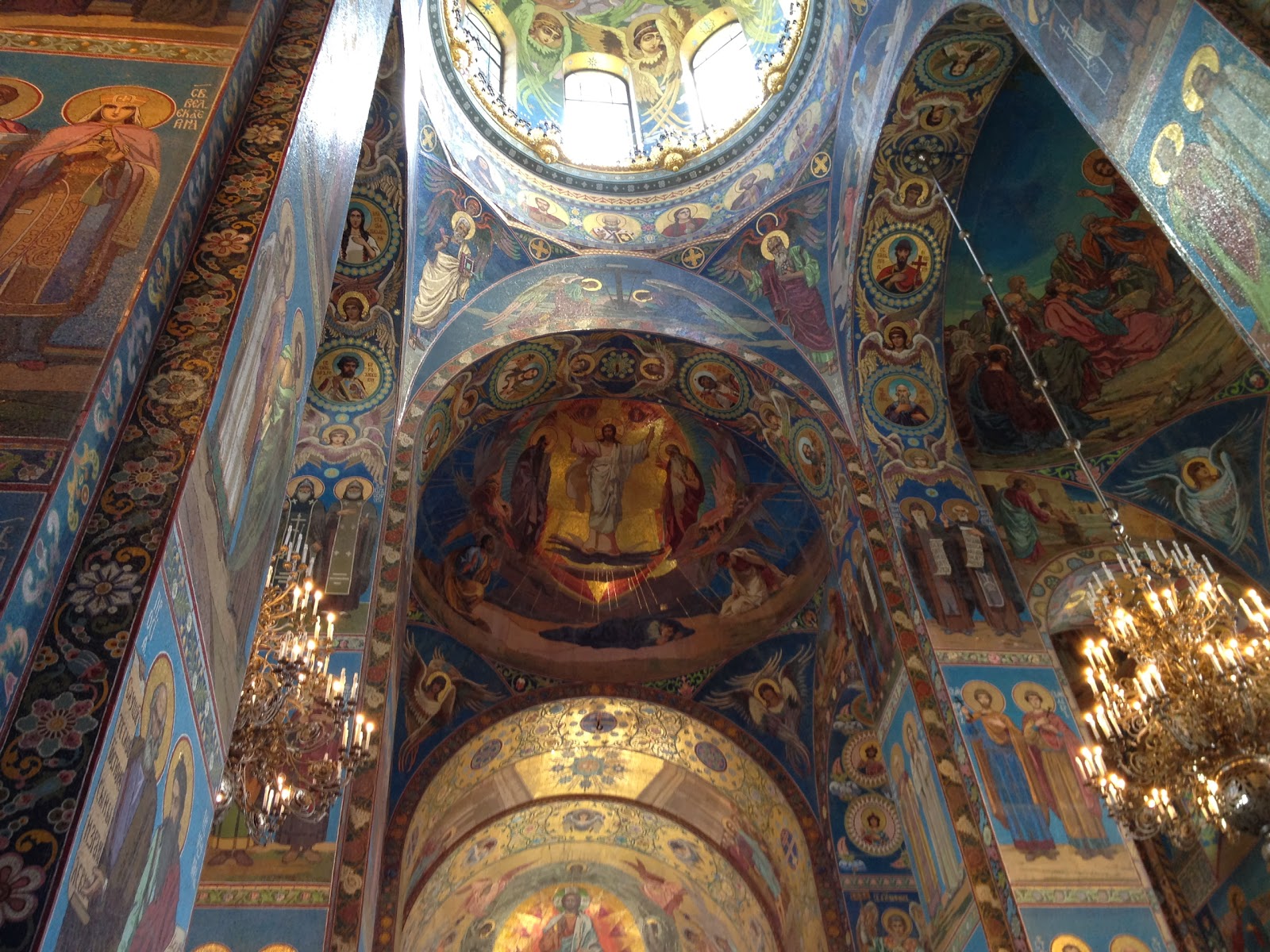 Of the several excellent churches in St. Petersburg, my favorite was the Church of the Savior on Blood, which has several variations of that name. It’s a colorful church that you can tour, just a few steps off Nevskiy Prospekt. As I found out, it’s also near several bars and restaurants, a convenient location all around.