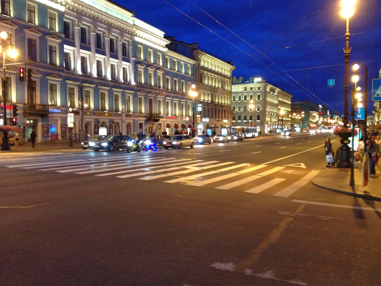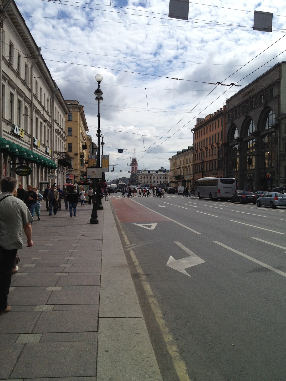 I kept jogging through the Palace Square towards Nevskiy Prospekt, the main street. It’s a really fun town for walking, jogging, and biking — at least in the summer (I was there in July), when the sidewalks are clear, no ice anywhere. I jogged as far as Ploschad Vosstaniya, then back home to shower and change. It made for a nice refreshing loop.