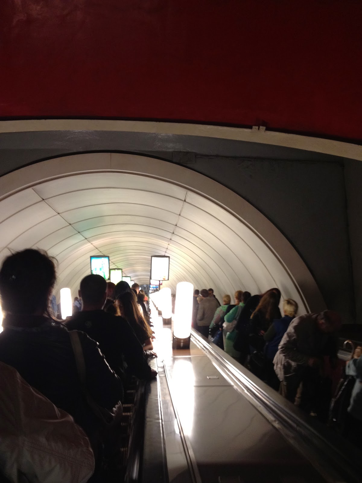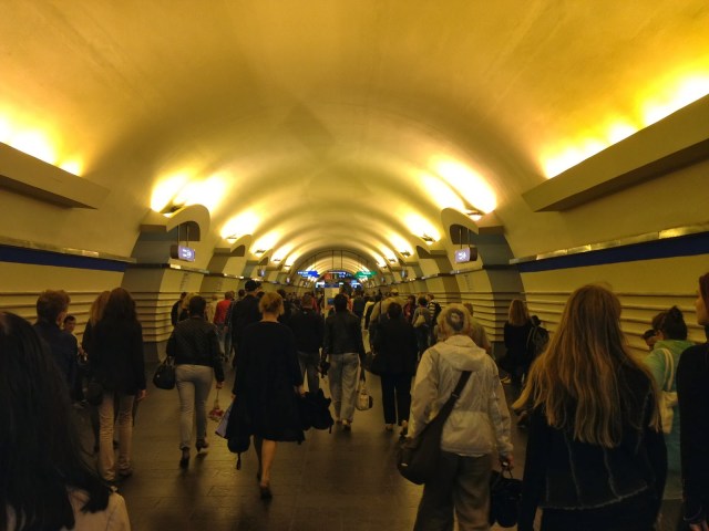St. Petersburg’s underground train / metro system is well-known for its very deep and pretty stations. I made sure to use the subway a couple of times, and it was fun. It was easier to find your way around compared to Moscow’s subway, because the signs had some English on them.