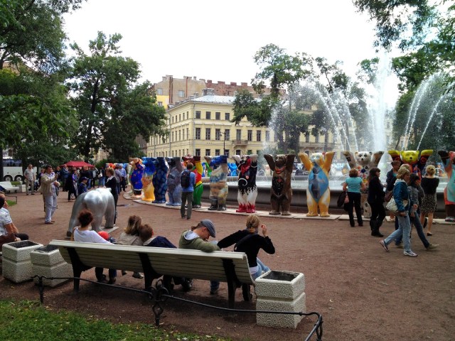 The churches of St. Peter and St. Paul (part of a fortified complex that has little else to see), and St. Isaac’s, were both fun as well. One of them is right by the Admiralty, which was closed for renovations while I was there, but had a fun exhibit of standing bears outside the building.