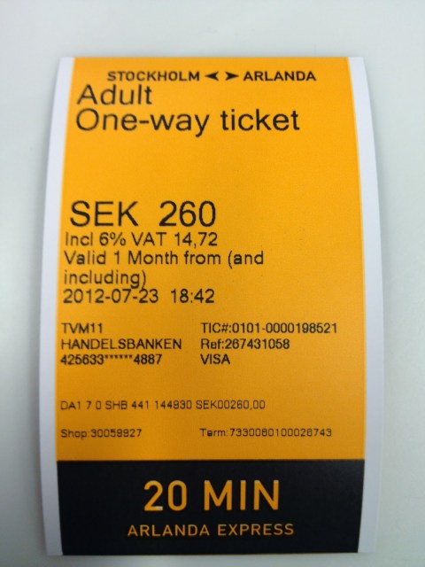 Arlanda airport to downtown Stockholm. It’s also pretty fast: 205Km/h, or 120mph, but quiet and stable. The ride takes about 20 minutes, exactly as advertised. Why don’t we have trains like this?