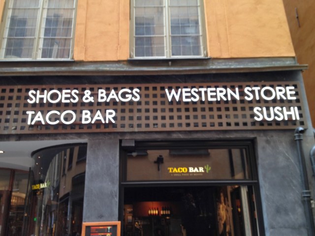 After the museum, I kept on walking south, through Gamla Stan and into an area called Sodermalm. I walked along Gotgatan, a big pedestrian shopping area, with many amusingly-named stores. There’s a subway station here called Skanstull, where I boarded the train (“T-bana”) to Fridhemsplan.